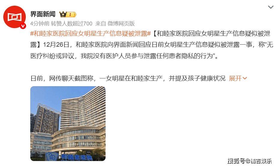 盘绕女明星阚清子坐蓐音信疑似泄漏事务,良善家病院含糊医护职员出席泄密,但网传闲扯截图与光阴线冲突、泄漏源流争议等核心延续激发公家对医疗隐私守卫的质疑。